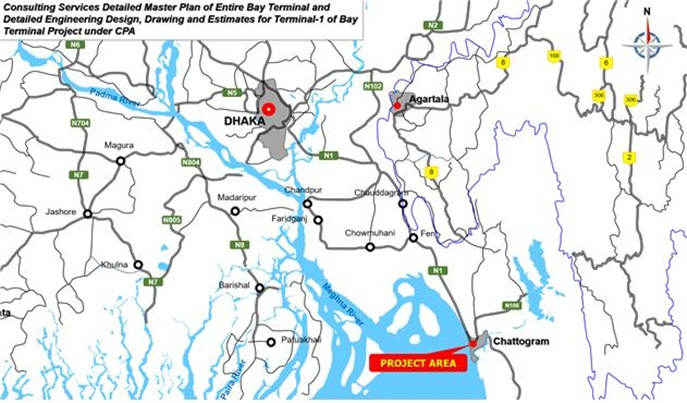 전 세계 인구 순위 8위에 올라있는 방글라데시는 최근 연평균 7% 이상의 높은 경제성장률을 보이며 급속한 경제발전과 함께 남아시아에서 영향력을 넓혀가고 있습니다. 방글라데시는 한국의 EDCF 차관 해외 지원국 2위에 해당할 정도로 우리나라와 밀접한 관계를 맺고 있기도 합니다. 이번 프로젝트 사업지인 치타공은 방글라데시 제2의 공업도시로 북쪽과 북동쪽으로 약 16km에 걸쳐 각종 제조업체들이 들어서 있고 해외무역의 관문 역할을 하고 있습니다. 치타공 항만은 현재 방글라데시 물동량의 92%를 담당하고 있는데 경제성장에 따른 물동량의 증가와 장비 및 시설 부족으로 극심한 체선을 빚고 있어서 방글라데시 정부는 대체 항(파이라 항) 개발과 치타공 항만터미널 추가 개발 계획을 수립하게 된 것입니다.