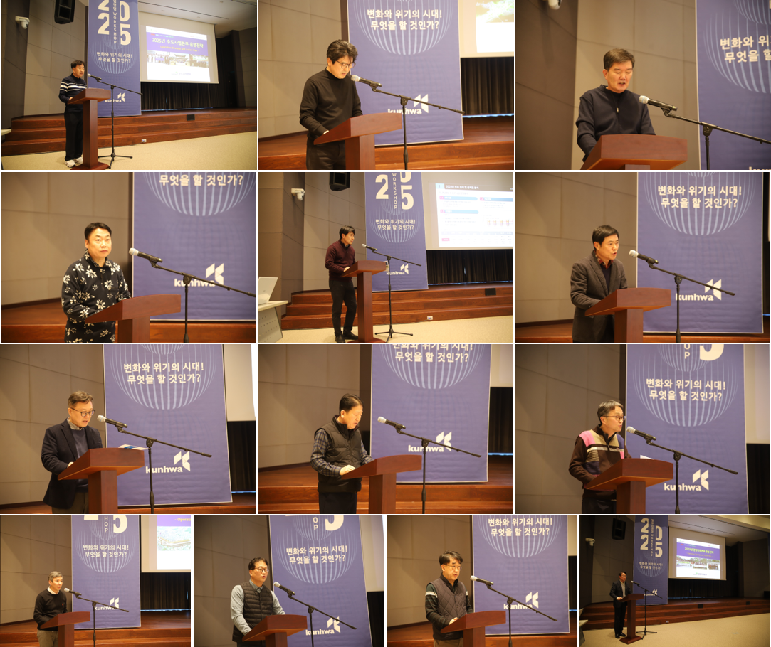 모든 부서장은 순서대로 발표를 진행하며, 회사의 미래 비전인 ‘건화 2030’을 토대로 삼아 변화와 위기 속에서 성장과 발전을 위한 전략을 제시했습니다. 이어 실행 방안도 공유했습니다.