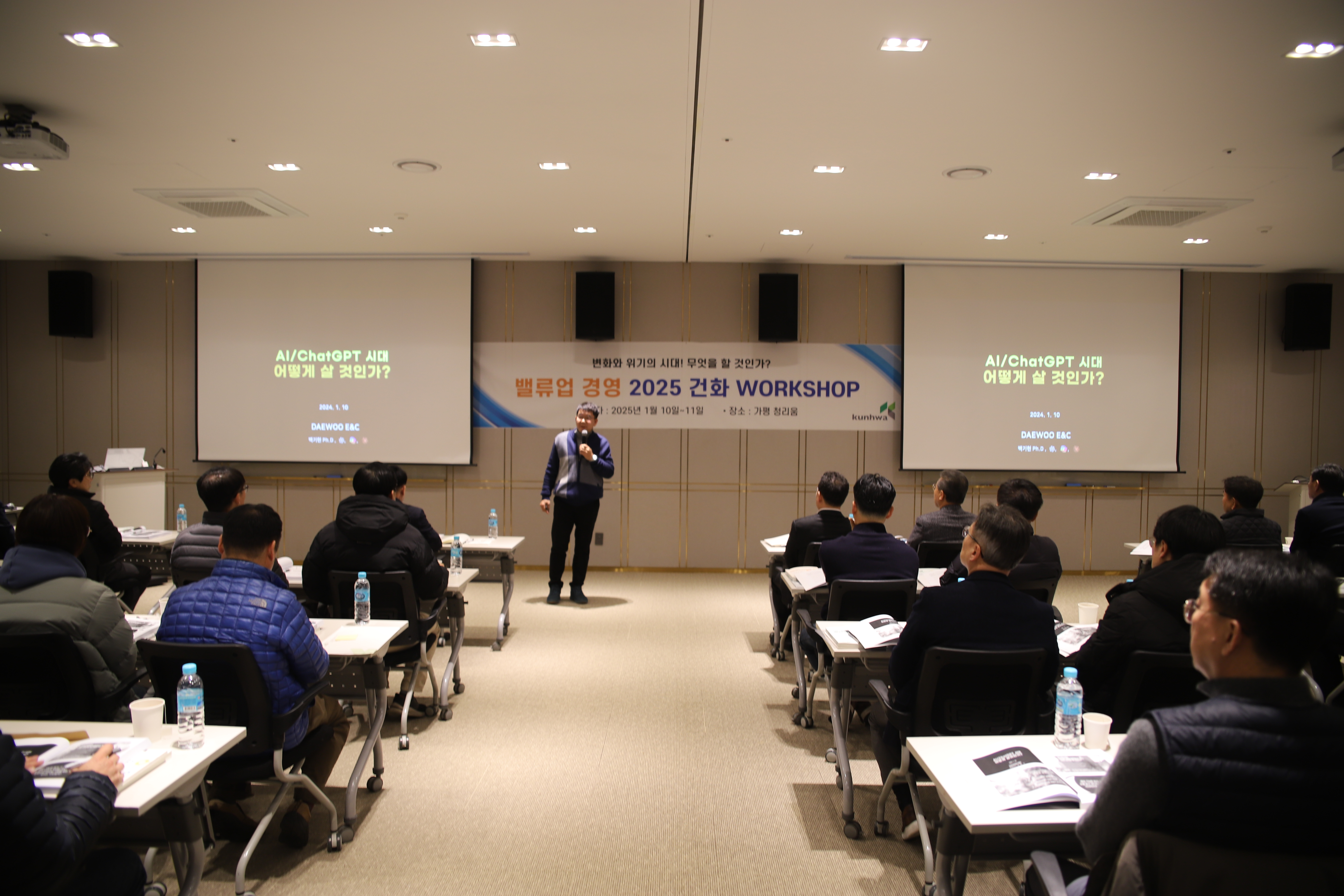 이번 부서장 워크숍의 진행을 맡은 전략기획실 김영근 실장은 밸류업 경영의 의미와 각오와 건화 2025년 핵심 추진 과제와 실천 전략에 대해 전달했습니다.