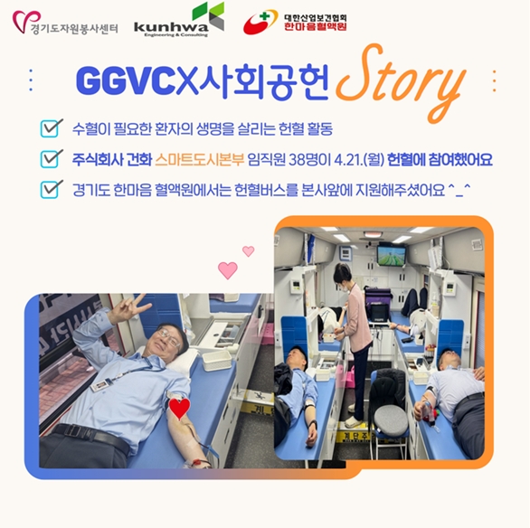 지난 4월 21일, 스마트도시본부는 경기도 자원봉사센터 및 한마음혈액원의 협조 아래 본부 차원의 단체 헌혈봉사 활동을 진행했습니다. 이번 행사는 단지설계부의 사회공헌 활동의 일환으로 다양한 봉사활동 중 첫 스타트로 ‘사회 기여의 첫 발걸음’을 내딛는 의미 있는 출발점이 되었으며 도시계획부, 레저조경부까지 동참한 가운데 단지설계부 박상우부서장을 포함한 임직원 38명이 자발적으로 참여하여 나눔의 가치를 몸소 실천하였습니다.
